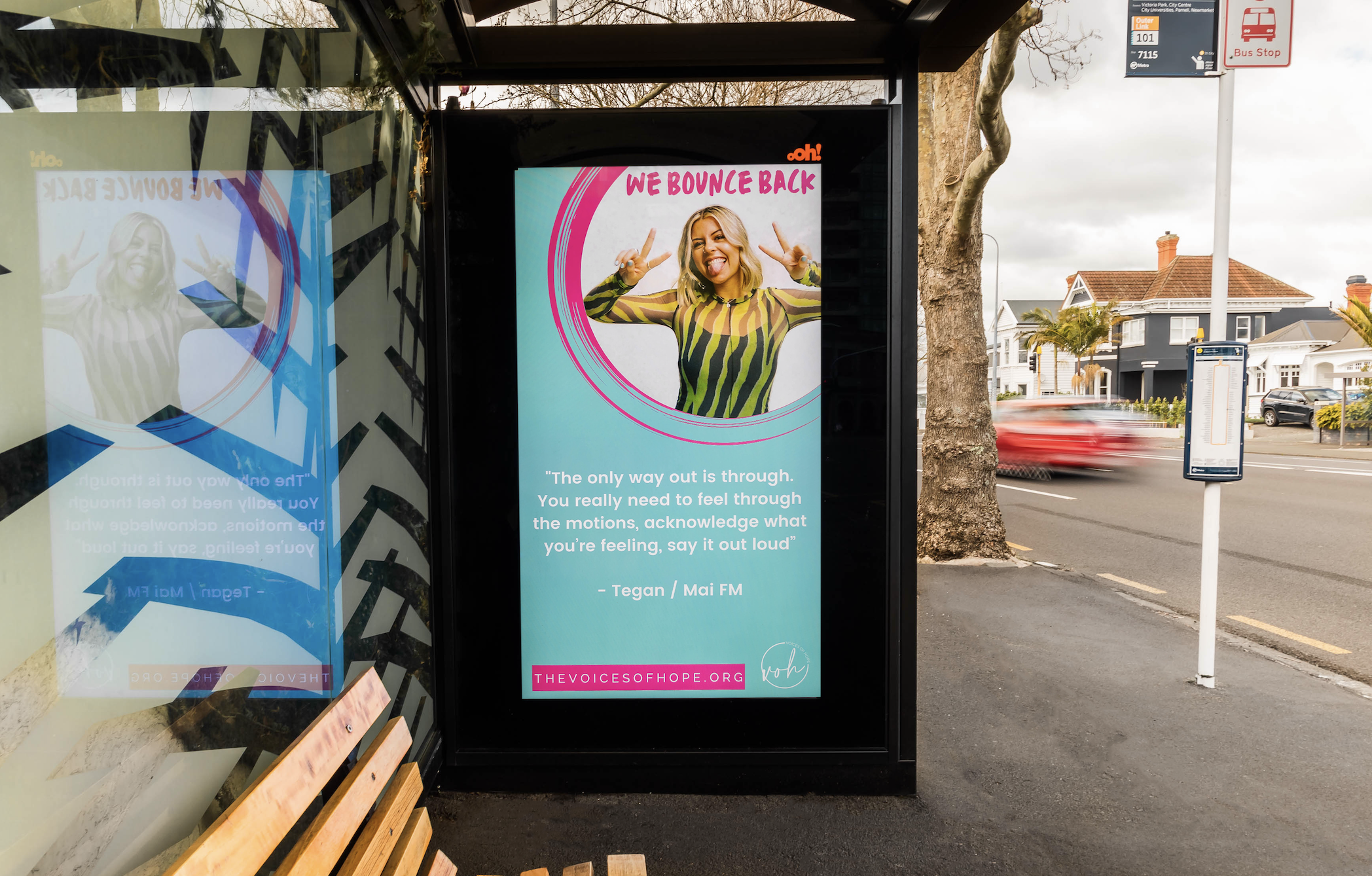 The partnership has been kicked off with our We Bounce Back campaign, with their support we are able to share messaging all around New Zealand on their billboards, bus shelters and in malls.